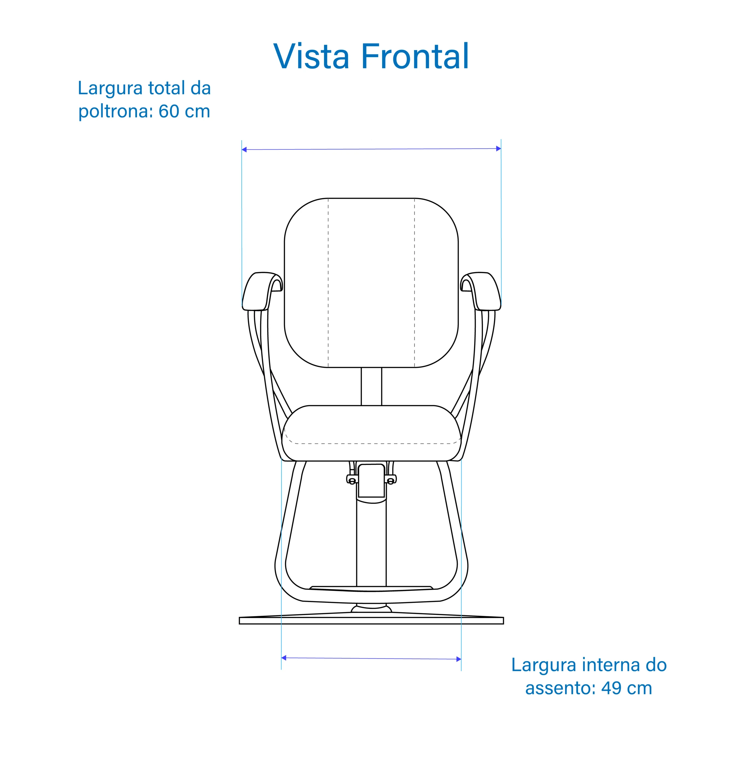 Largura: externa 60 cm, interna do assento 49 cm;