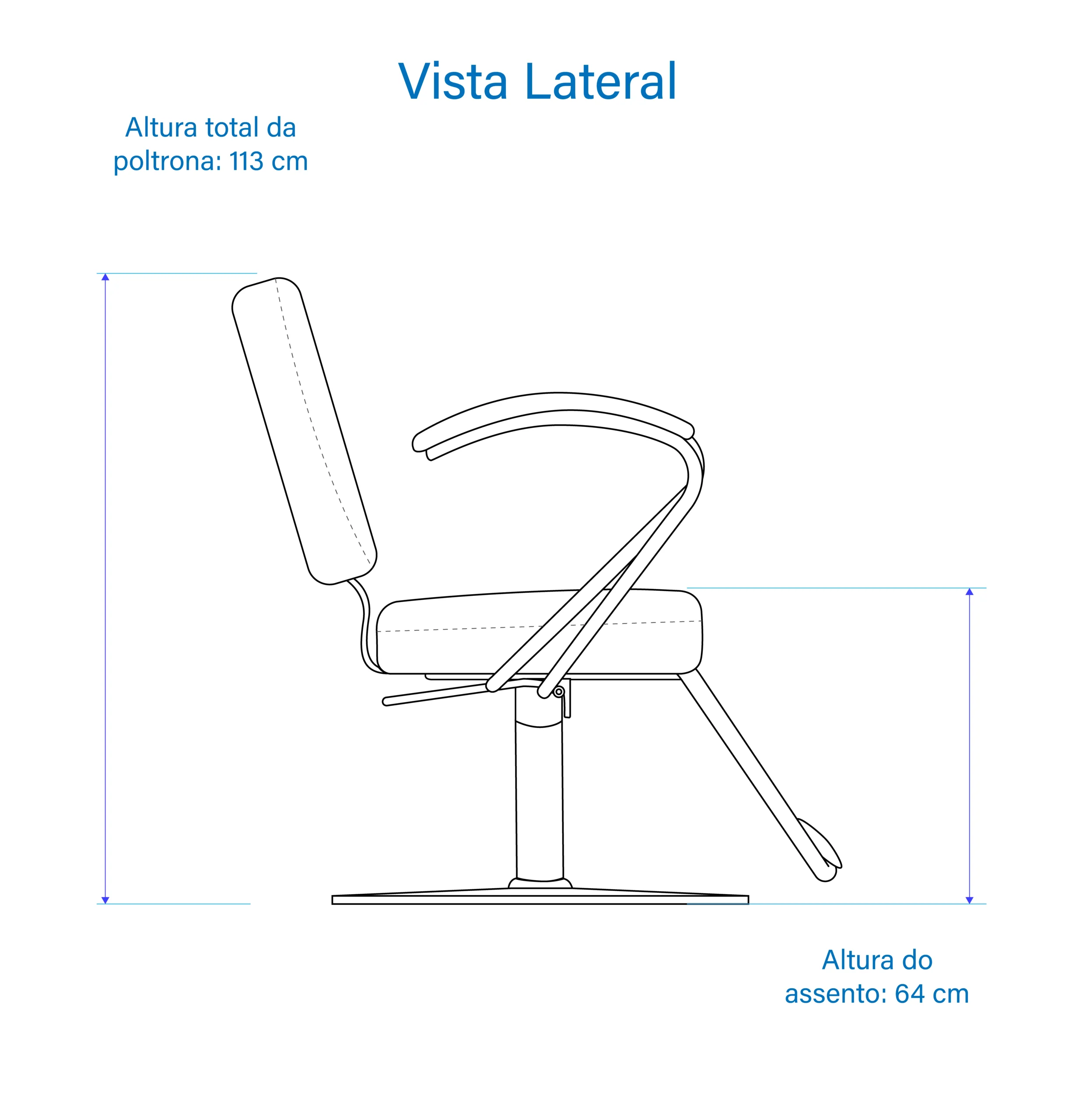 As alturas informadas referem-se à versão com base quadrada. Bases alternativas, como Inox ou pentapé, podem apresentar alturas diferentes.