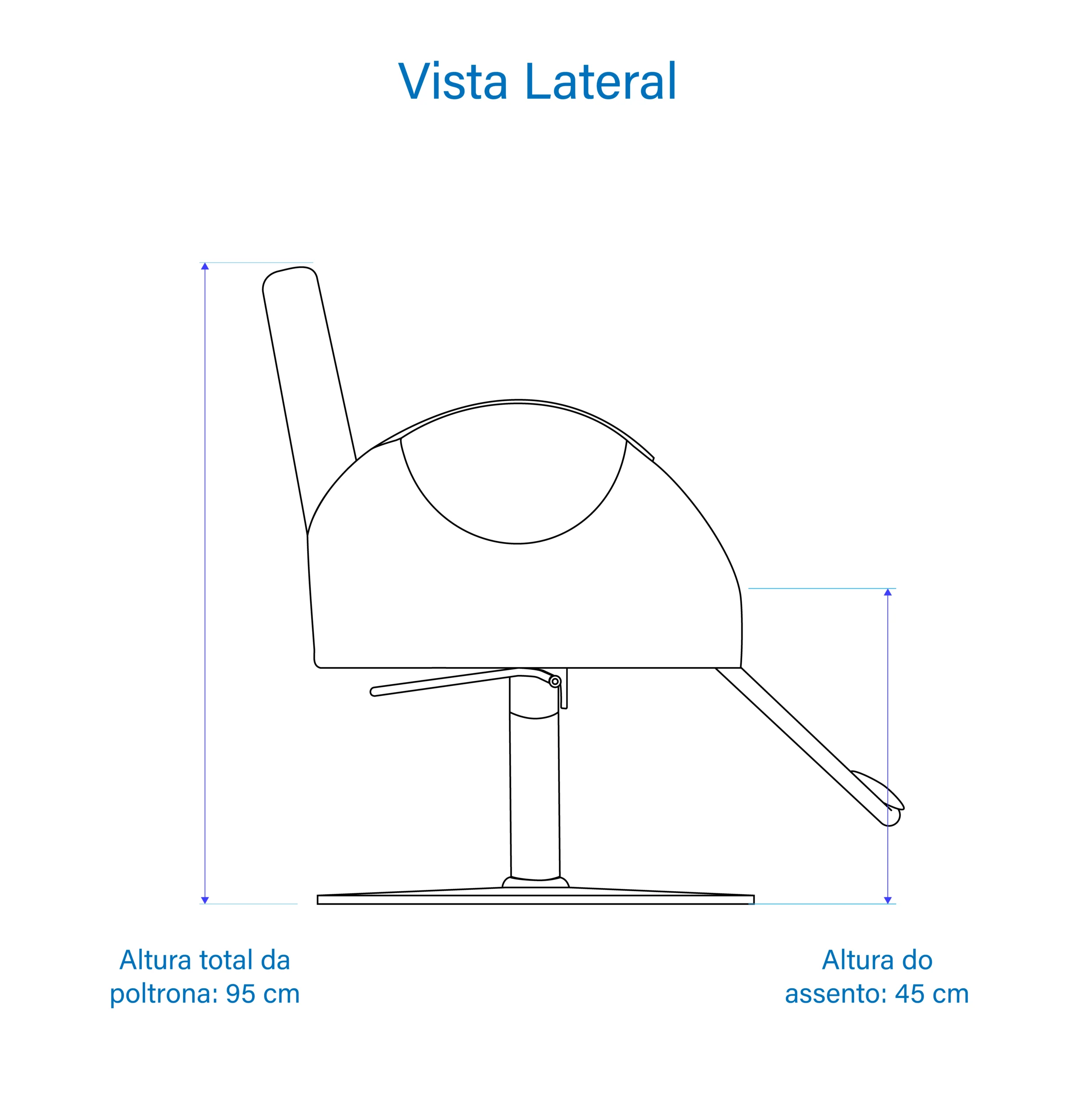 As alturas informadas referem-se à versão com base quadrada, considerando a elevação máxima do sistema hidráulico (variação de até 22 cm). Bases alternativas, como Inox ou pentapé, podem apresentar alturas diferentes.
