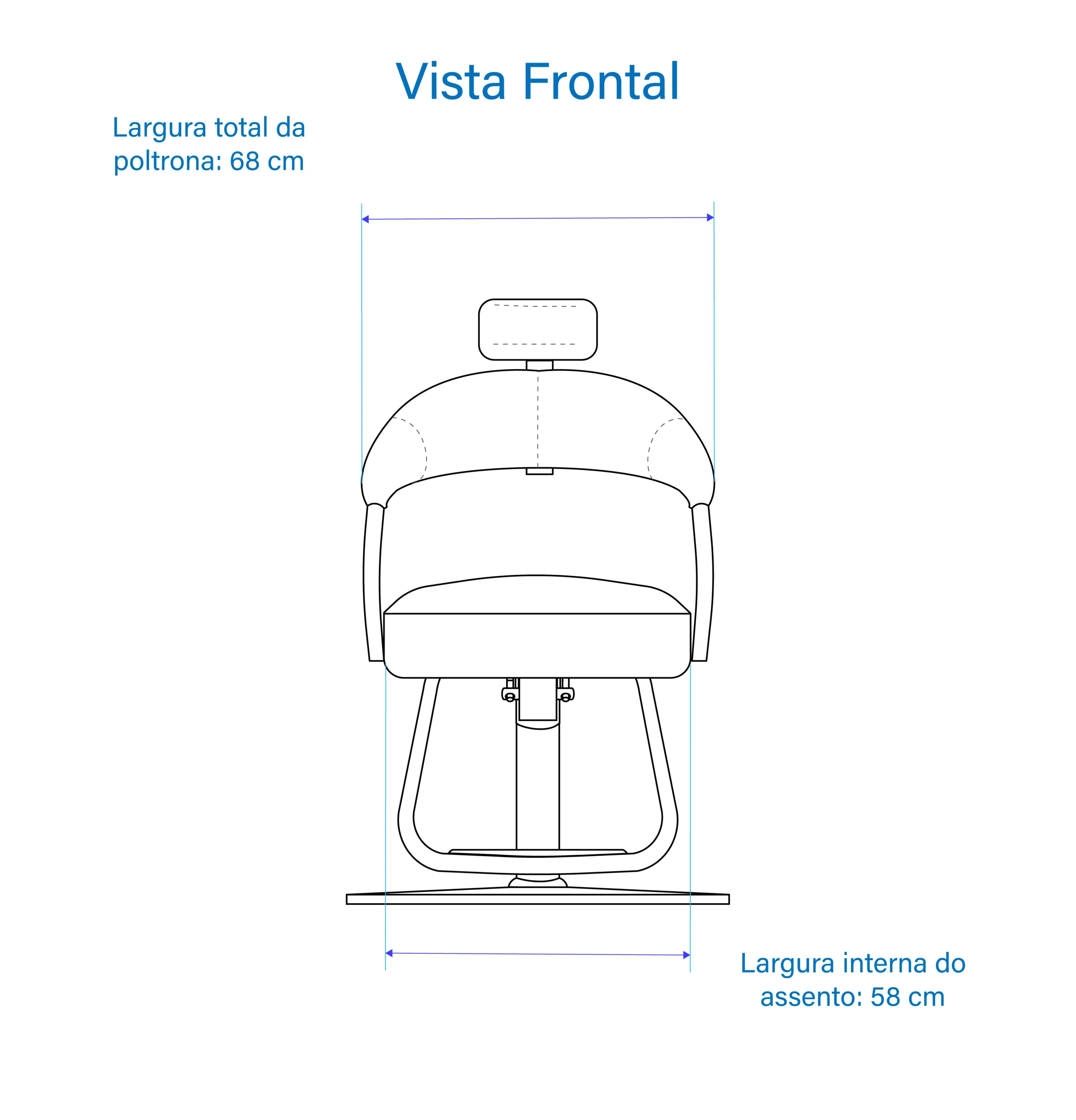 Largura: externa 68 cm, interna do assento 58 cm