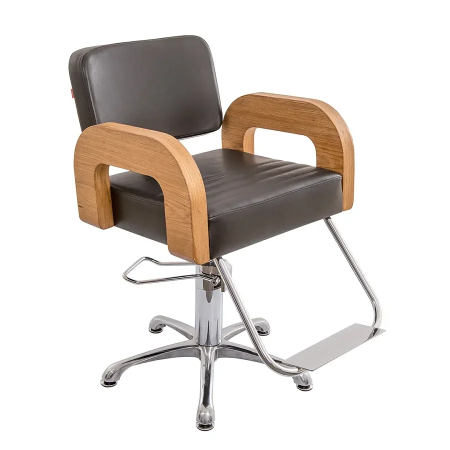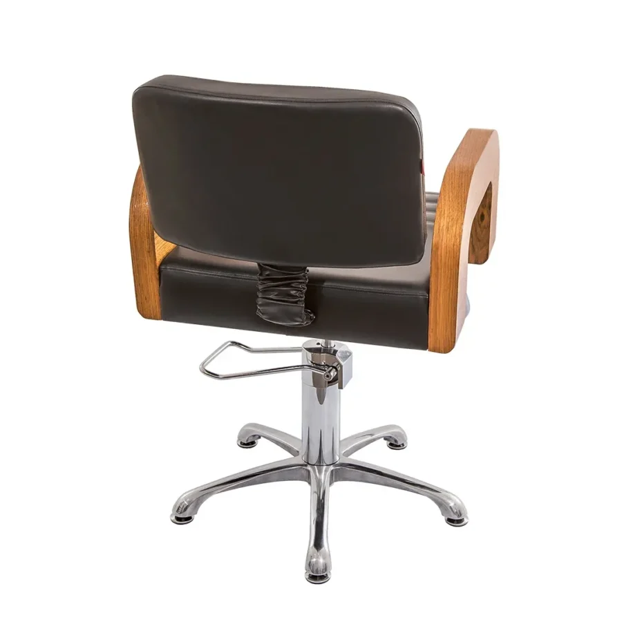 Confortáveis braços invertidos, amadeirados e envernizados. Ideal para corte de cabelo, com um design ergonômico e encosto curto, ela garante que os clientes fiquem bem acomodados, enquanto os profissionais têm acesso fácil ao cabelo.