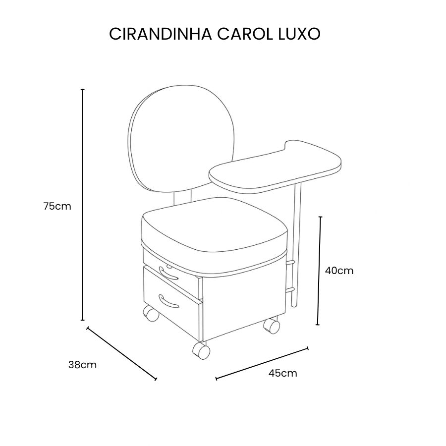 Estofamento: Estofado em espuma laminada de alta densidade com acabamento em material sintético resistente.