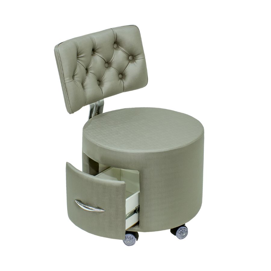 Estofado: Espuma de alta densidade com revestimento em material sintético resistente (diversas cores) com detalhes em capitonê no encosto.