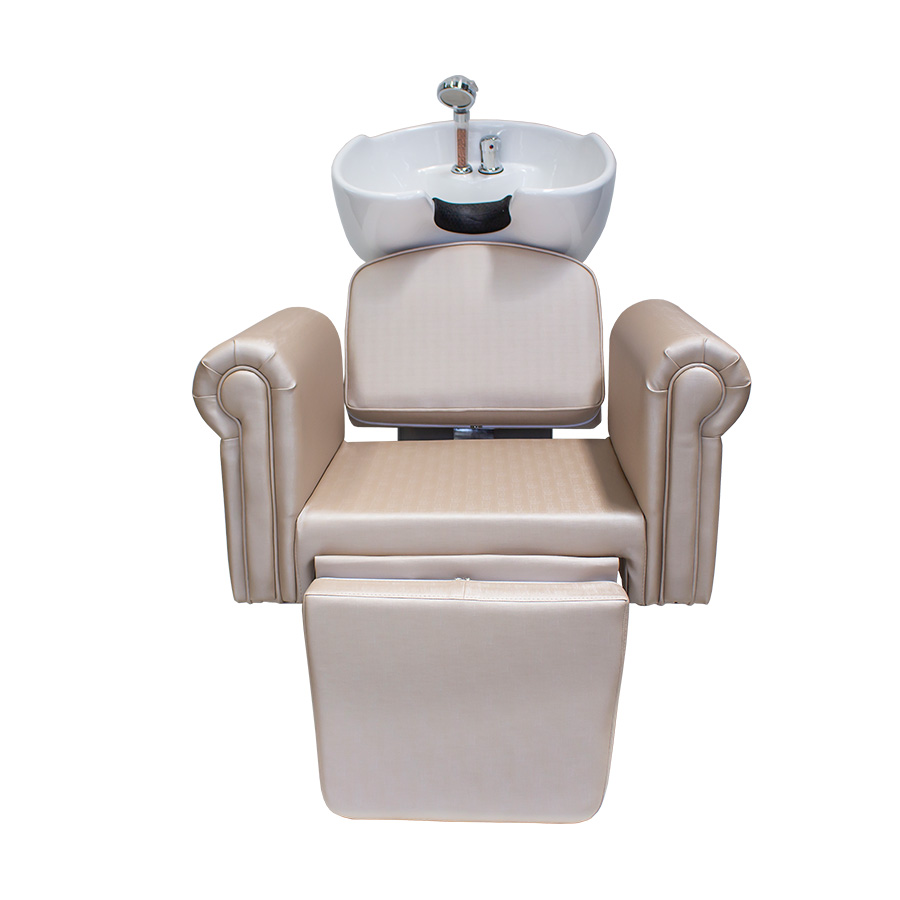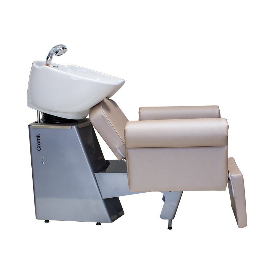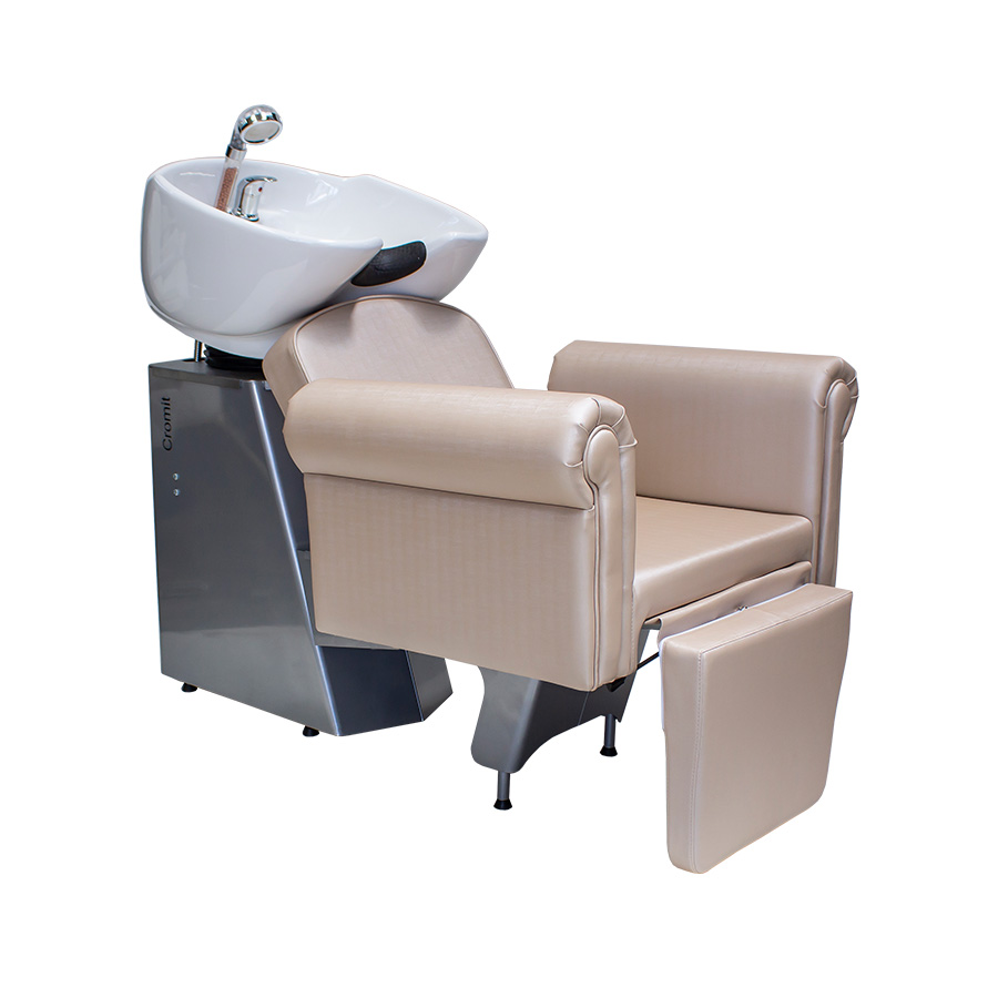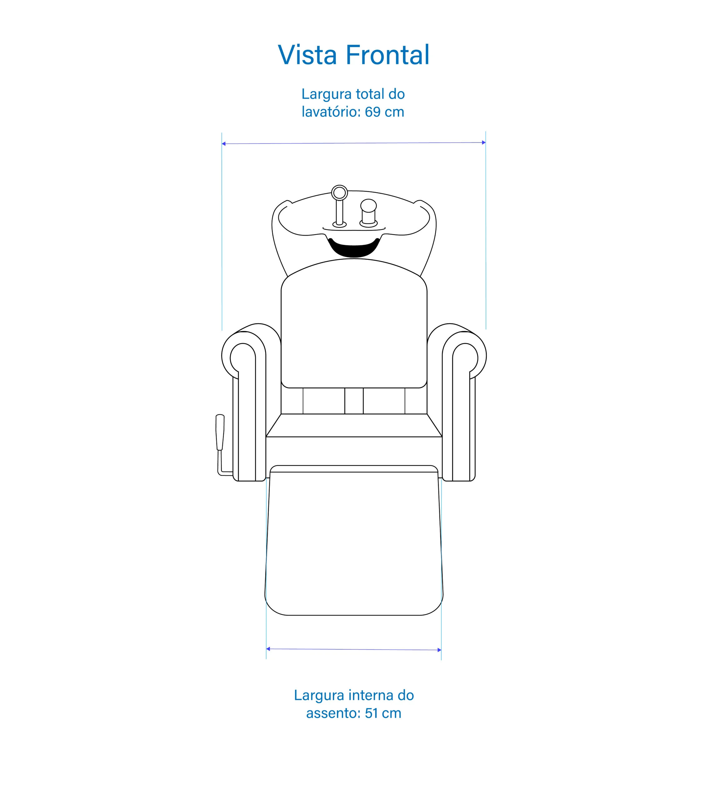 Poltrona ampla com detalhes de costura em vivo. Lavatórios para salão de beleza com estrutura em metal galvanizado, duráveis e resistentes à corrosão, ideais para ambientes úmidos. Eles oferecem estabilidade, um design moderno e são fáceis de limpar, além de proporcionarem conforto aos clientes com assentos ergonômicos. Possui cuba ampla de porcelana.