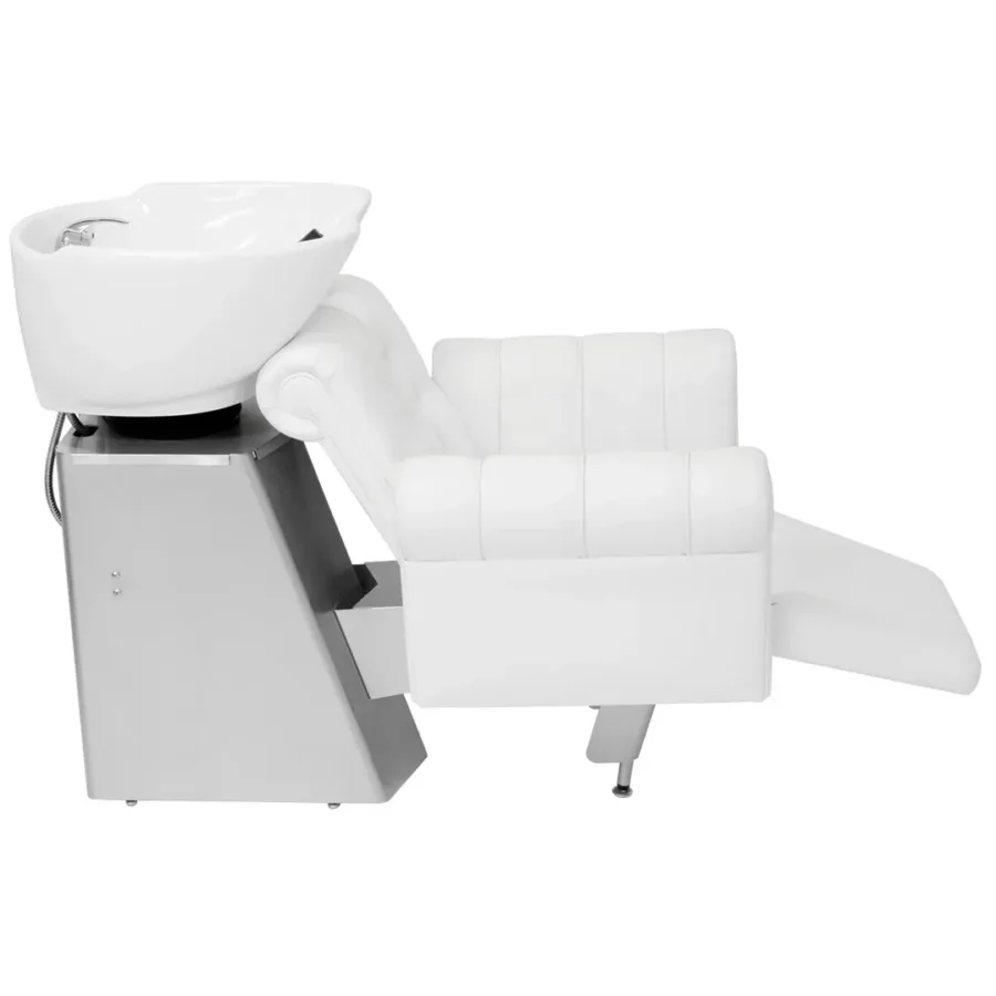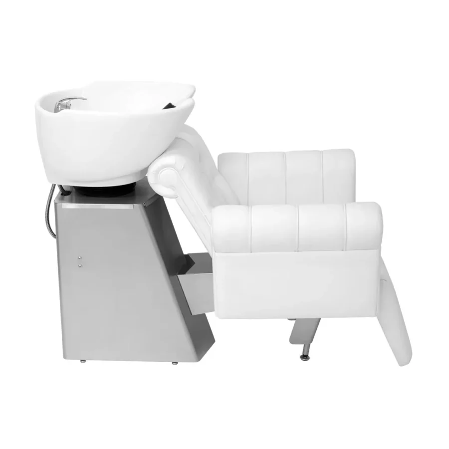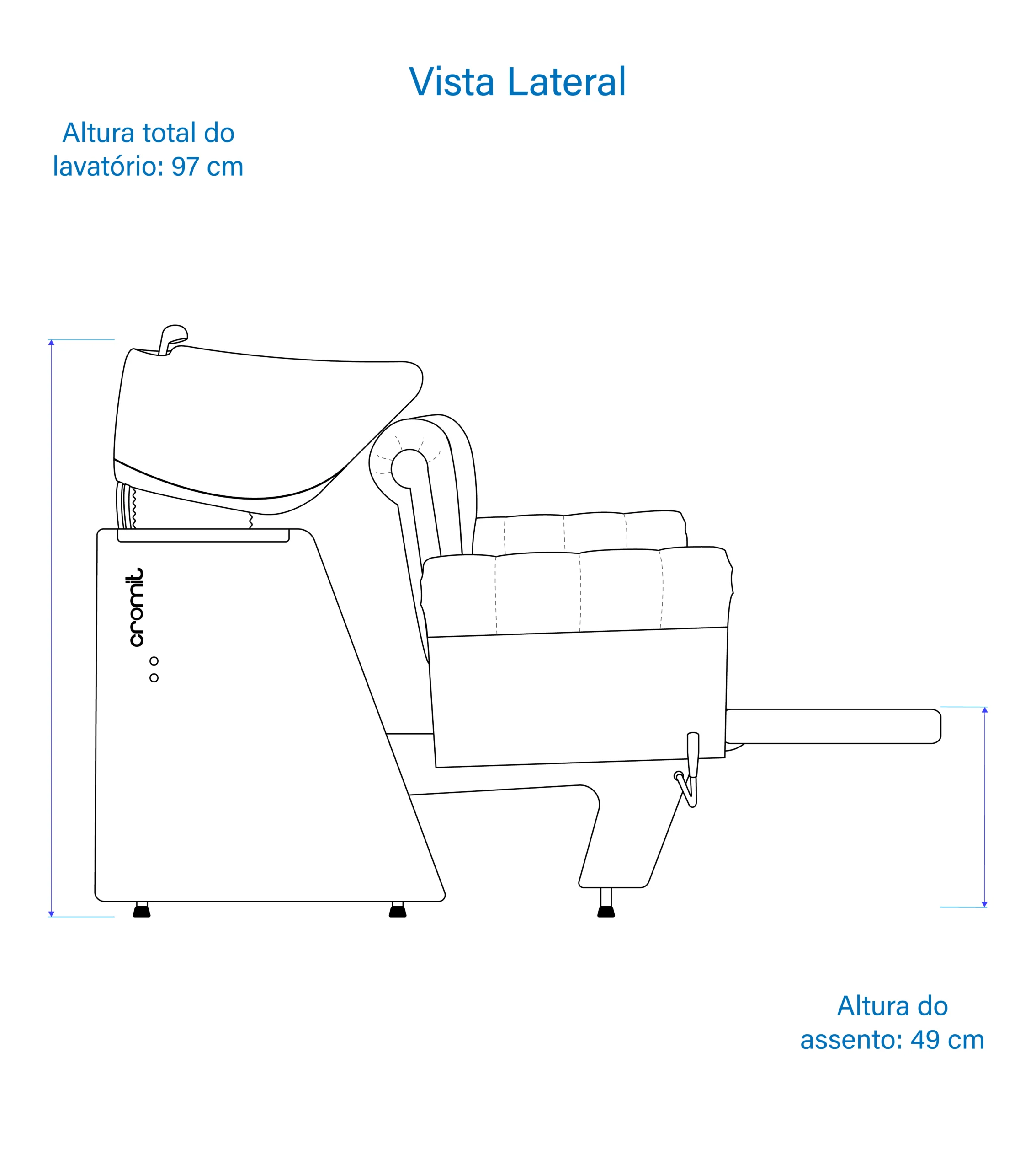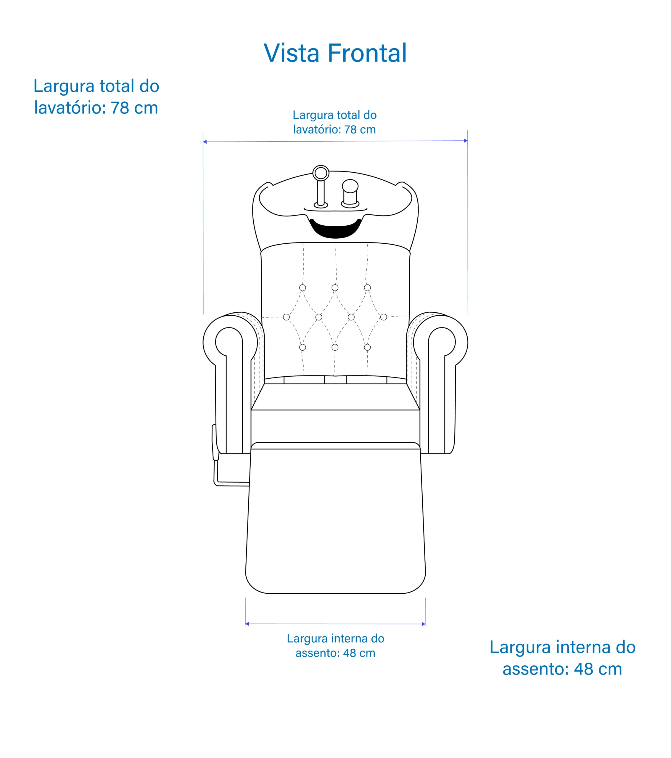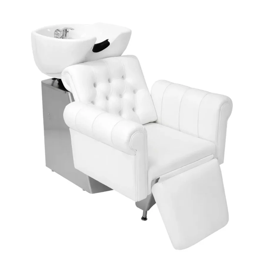 Poltrona com detalhes em capitonê e acabamentos de costura em vivo, design retrô.  Lavatórios para salão de beleza com estrutura em metal galvanizado. Duráveis e resistentes à corrosão, ideais para ambientes úmidos. Eles oferecem estabilidade, são fáceis de limpar, além de proporcionarem conforto aos clientes com assentos ergonômicos. Funcionalidades adicionais para garantir a melhor experiência no salão. Possui cuba ampla de porcelana, conjunto de misturador e relax opcional.