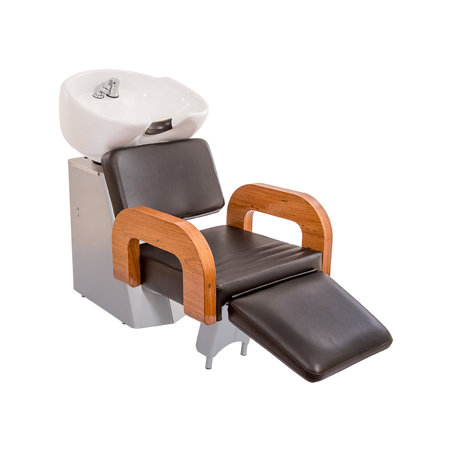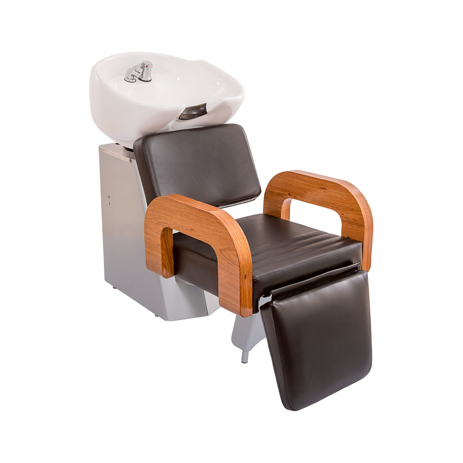 Confortáveis braços invertidos, amadeirados e envernizados. Lavatórios para salão de beleza com estrutura em metal galvanizado, duráveis e resistentes à corrosão, ideais para ambientes úmidos. Eles oferecem estabilidade, um design moderno e são fáceis de limpar, além de proporcionarem conforto aos clientes com assentos ergonômicos. Possui cuba ampla de porcelana.