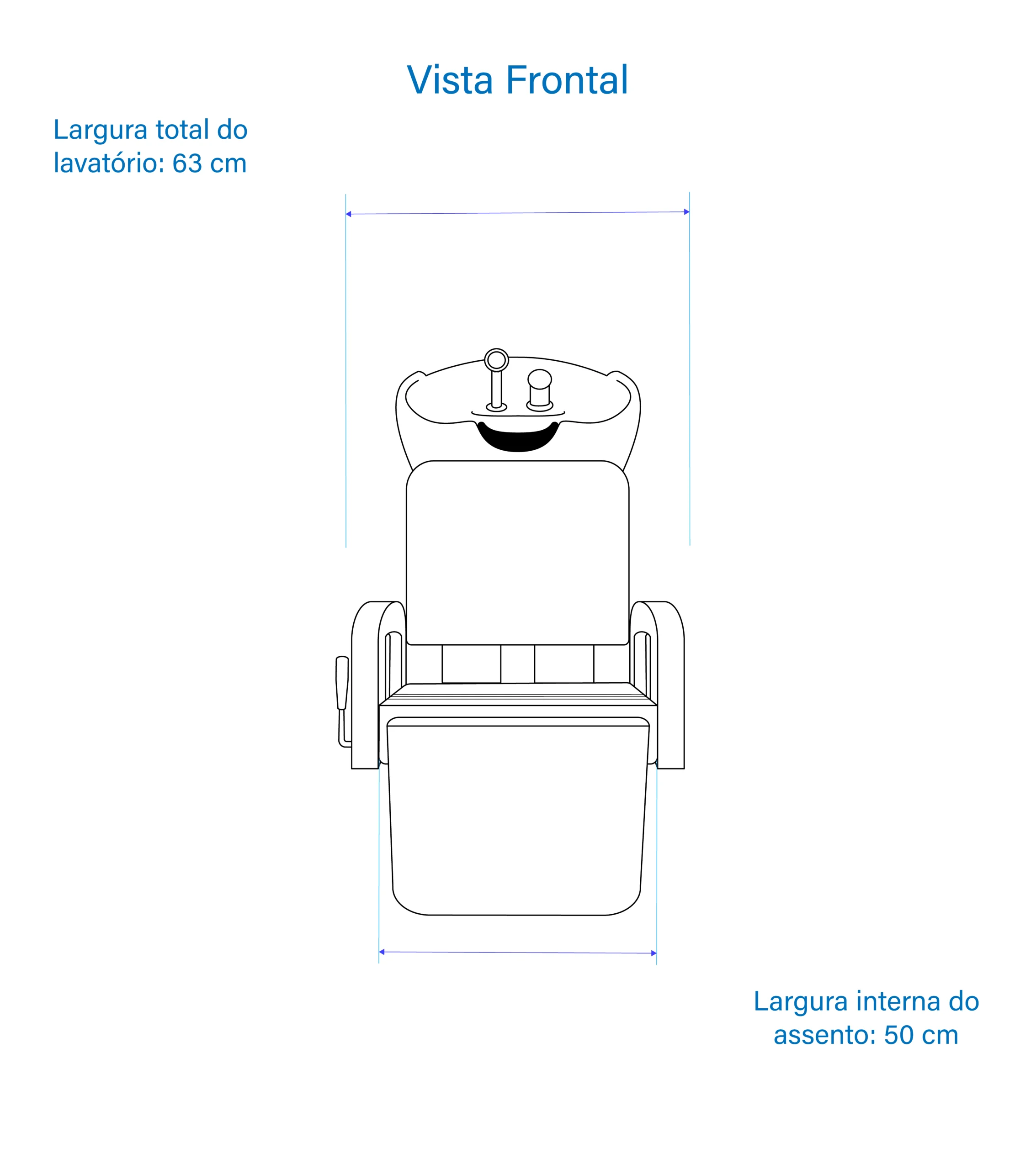 Largura externa: 63 cm; Largura interna do assento: 50 cm