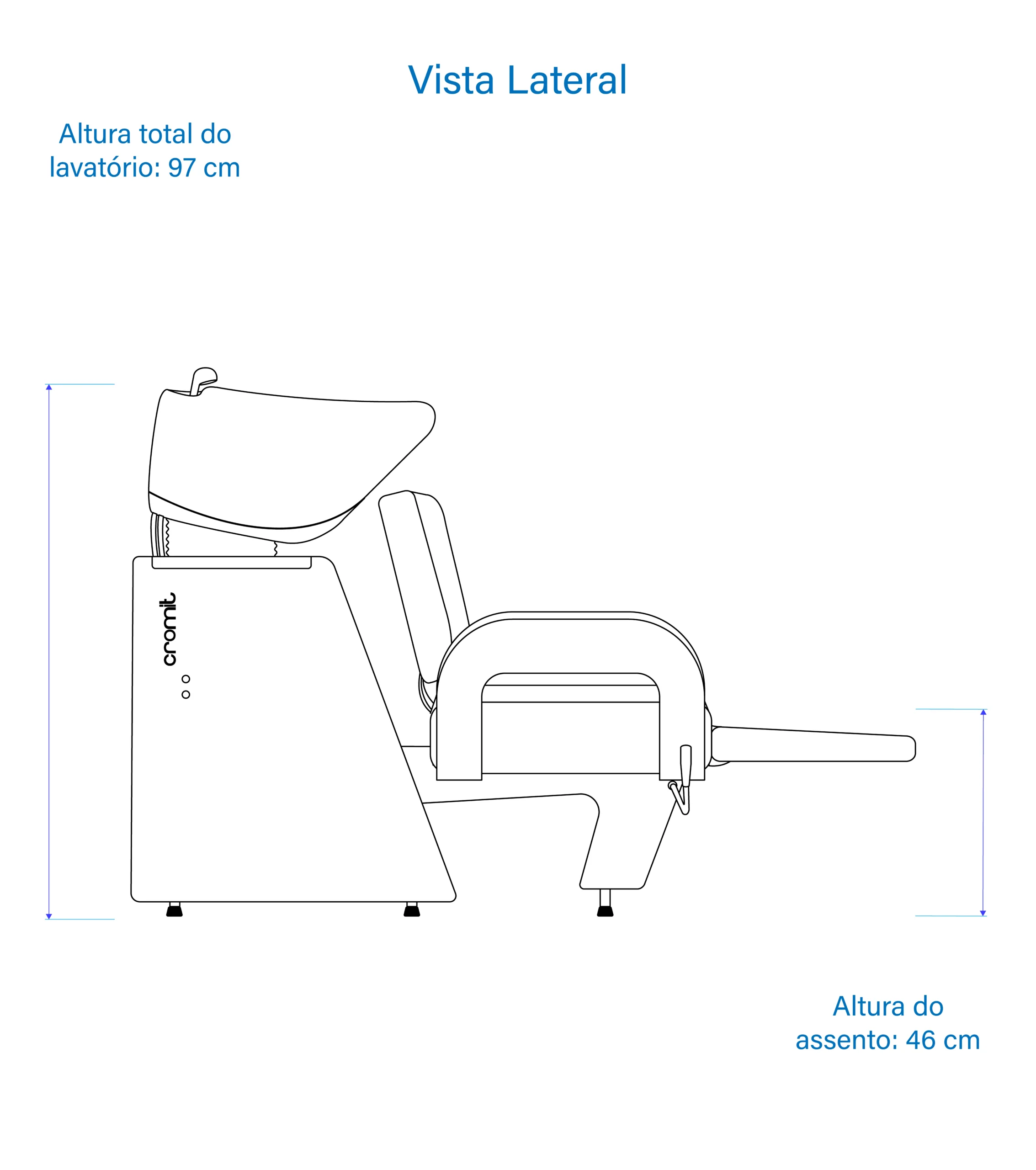 Altura total: 97 cm; Altura do assento: 46 cm