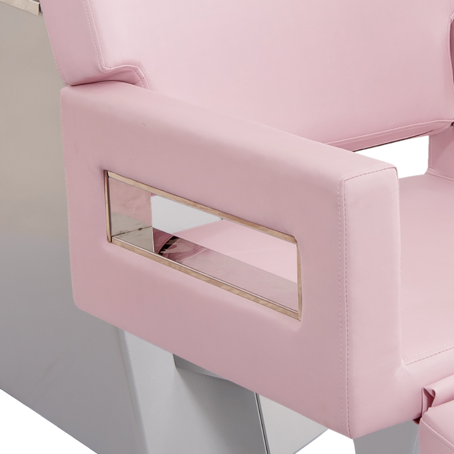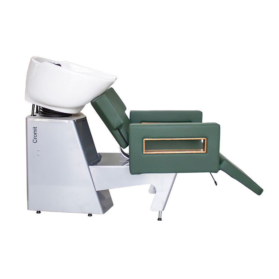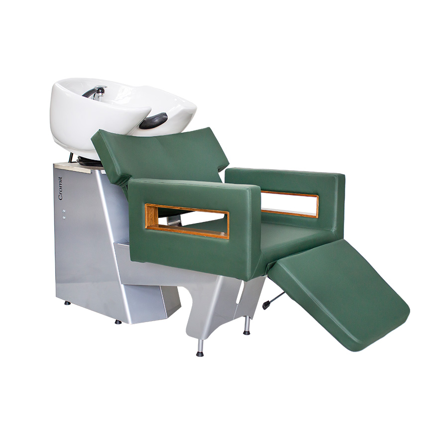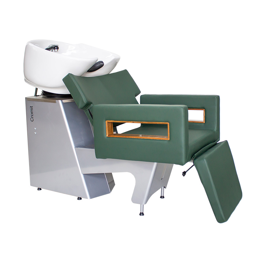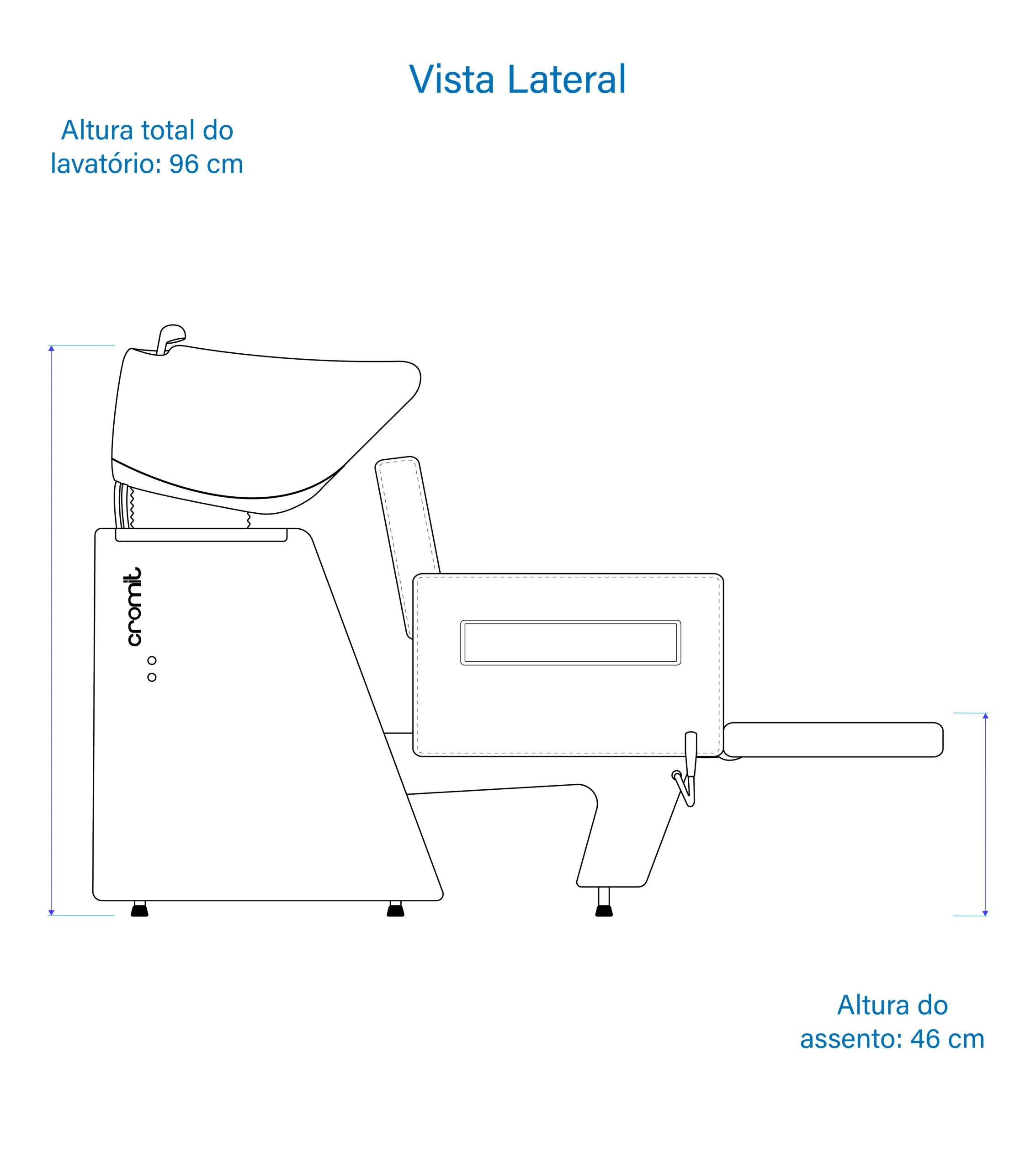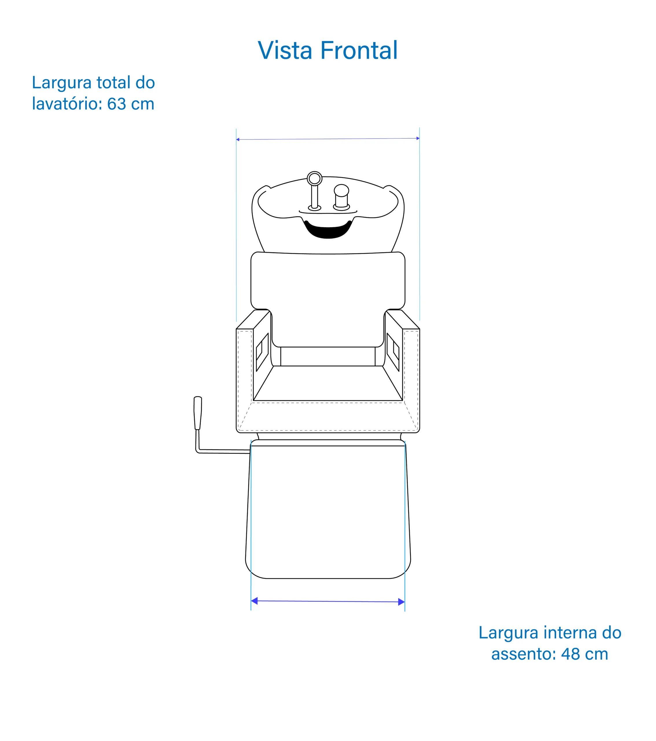 Braços com detalhe amadeirado. Lavatórios para salão de beleza com estrutura em metal galvanizado, duráveis e resistentes à corrosão, ideais para ambientes úmidos. Eles oferecem estabilidade, um design moderno e são fáceis de limpar, além de proporcionarem conforto aos clientes com assentos ergonômicos. Possui cuba ampla de porcelana.