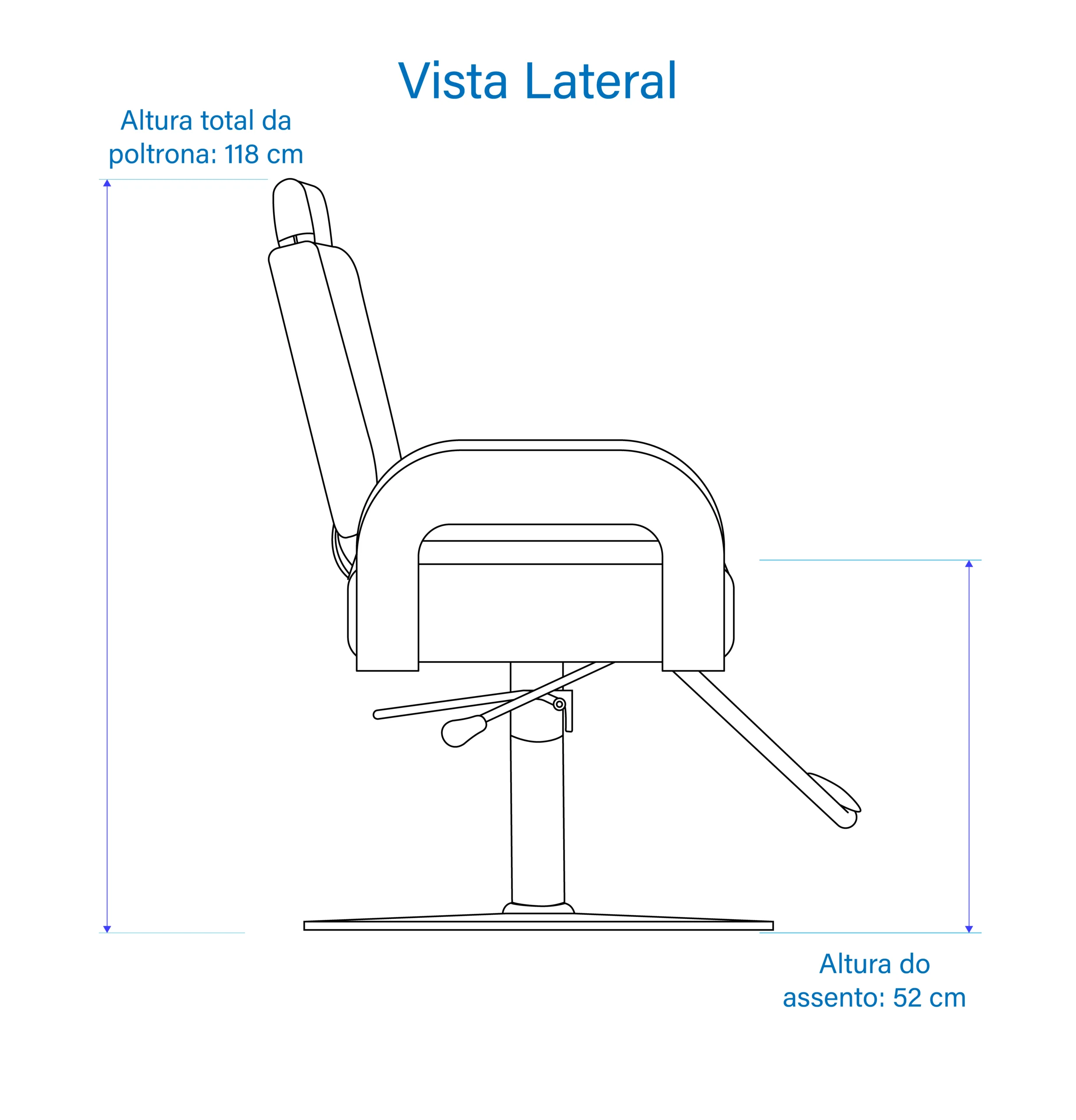 Altura: total máxima 118 cm; Altura do assento: 52 cm;