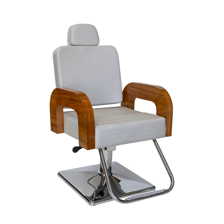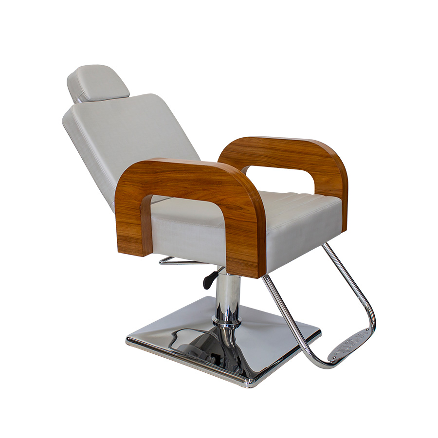Confortáveis braços invertidos, amadeirados  Poltrona reclinável essencial para proporcionar conforto tanto para os clientes quanto para os profissionais.
